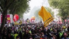 Към традиционните първомайски шествия, организирани от синдикатите, се присъединиха жълти жилетки, за да изразят недоволството си от икономическата политика на президента Еманюел Макрон.