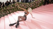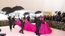 Лейди Гага се оказа основната атракция на благотворителния бал на Музея Метрополитън в Ню Йорк. Певицата и носител на Оскар пристигна с огромна розова рокля, но се оказа, че под нея има още 3 тоалета, които започна да разкрива с присъщата си артистичностите и предизвика еуфория сред присъстващ.