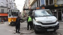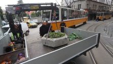 Новопоставените каменни кашпи на столичната ул. "Алабин" създадоха проблем с движението на трамваите в центъра на София и образуваха задръстване.