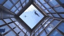 Басейнът ще бъде направен от акрил и ще има прозрачни страни и подове, така че посетителите на сградата ще могат отдолу да видят плувци, които се носят над тях.