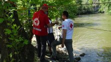 Екипи на Българския червен кръст демонстрираха преди обяд днес спасяване на хора, попаднали във водите на река Струма край град Кресна, предаде кореспондентът на БГНЕС за региона.