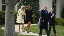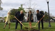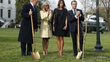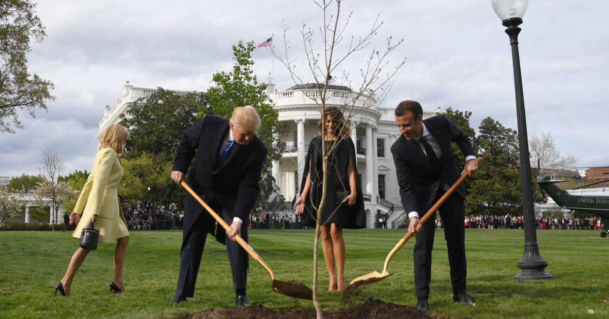 Лидерите засадиха дъб по време на държавната визита на Макрон в САЩ през април 2018 г., за да покажат приятелските отношения между двете държави.