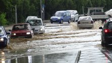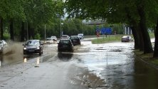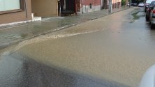 Вследствие на пороя се наводни входа на града откъм с. Бело поле, автомобилите буквално плуваха в половин метър вода. Един лек автомобил закъса в езерото, образувало се на входа на града.