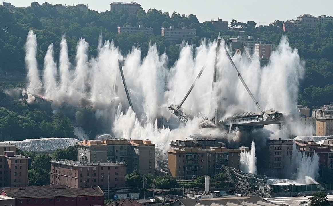 Експерти по разрушаване взривиха носещи колони на моста „Моранди” в италианския град Генуа почти година след като структурата се срути, съобщи Би Би Си.