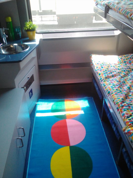Обзавеждането на спалните вагони с цветни аксесоари придава на кабините домашен уют и допълнително лятно настроение на пътниците в спалните вагони при пътуването им от София до Бургас и Варна.