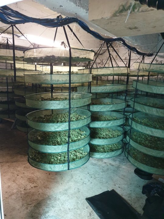 В помещението, собственост на 65- годишен софиянец, са намерени стотици саксии с канабисови растения, в различен стадий на зрелост, както и голямо количество растителна маса канабис, подготвена за сушене.