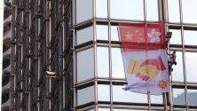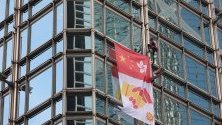 Ален Робер, наречен „Френският Спайдърмен“, се изкачи по фасадата на небостъргач в Хонконг и разгърна банер с призив за мир на фона на исторически вълнения в китайския административен район.