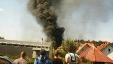 Пожарът е бил предшестван от две силни експлозии. Противопожарни екипи вече са на място. Над града се стеле гъст черен пушек.