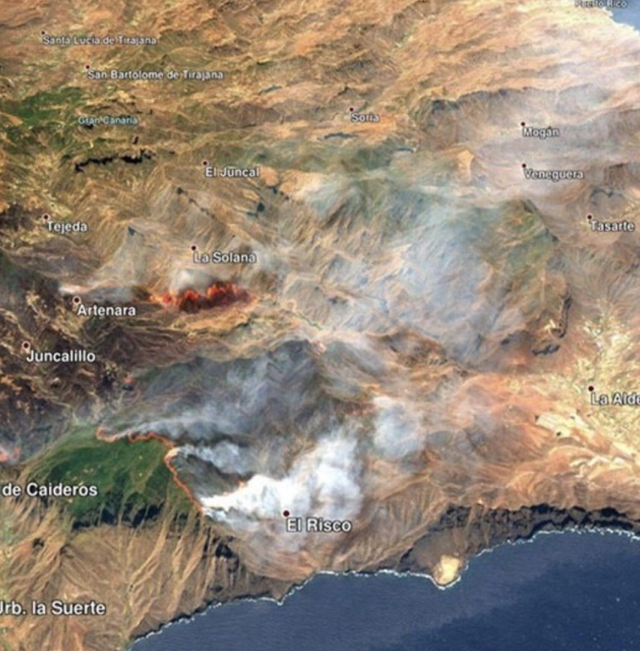 Уникални снимки от Космоса показват мащаба на огромните пожари, обхванали остров Гран Канария. Фотографиите са на двата сателита “Сентинел-2”, част от програмата “Коперник” на Европейската космическа агенция, които обикалят около Земята на височина 780 км.