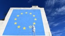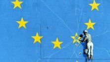 Рисунката изобразява работник, който се е качил на стълба и сваля една от 12-те звезди в знамето на ЕС. По-рано т.г. творбата бе оценена на 1 милион британски лири.