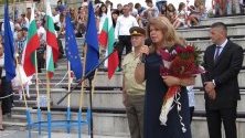 ''Днес ще се чуят много красиви думи, ще има ново припомняне на факти, на история, но най-важното, което трябва да направим днес е да знаем урока на тази история. Често пъти ще чуете нямаме кауза, имаме кауза, уважаеми дами и господа. Тя не може да бъде друга и различна от тази да имаме модерна, просперираща, стабилна България. Дом за всички нас, дом за децата ни. Да направим така, че да не ходят по гурбета, да имат своите семейства, своята кариера и своето бъдеще. Това е урокът на Съединението на България отпреди 134 години'', допълни Йотова.