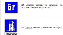 Предвидени са специални пътни знаци, указващи наличието на зарядни станции за електрически превозни средства и станции за зареждане на автомобили с водород.