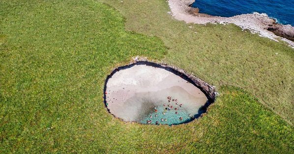 Един удивителен скрит плаж привлича туристи от целия свят. Той обаче е дело на хората - в началото на 1900-те правителството на Мексико провежда изпитания на оръжия и именно тогава се образува това място. За да се доберете до него, трябва да плувате през 15-метров тунел.