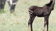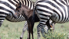 Меланизмът - противоположното на албинизма, се причинява от натрупване на тъмния пигмент в кожата. Райетата на малката зебра в случая не са се развили правилно и от тях са останали малки точки по кожата й. Гърбът й е черен, само на краката има тънки райета.