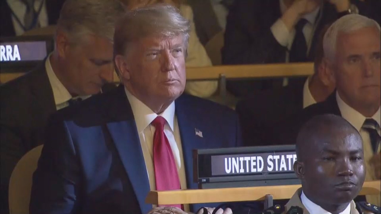 Тръмп, който не говори от трибуната, седна за няколко минути в залата, където изслуша, а след това и аплодира, речта на индийския премиер Нарендра Моди.