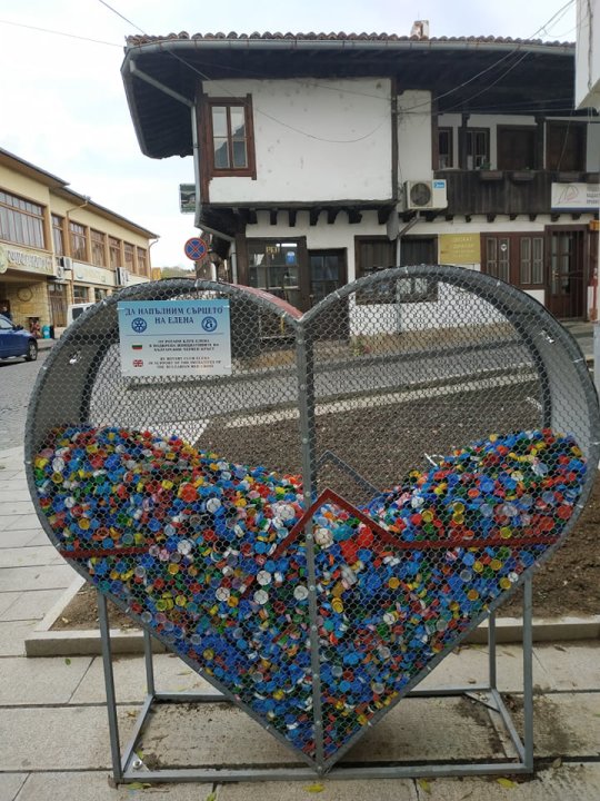 От месец насам в центъра на Елена, пред Туристическия информационен център, и пред входа на СУ „Иван Момчилов“ са поставени метални сърца, в които капачките ще се събират целогодишно и предават в обособените пунктове за рециклиране. Конструкциите са дарение от Ротари клуба в града. Пред очите на всички, деца и възрастни пълнят металните сърца с добрина, надежда и помощ за недоносените бебета.