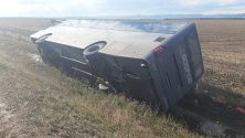 В автобуса, който е собственост на казанлъшка фирма, са били само шофьорът и негов спътник. Единият е леко пострадал. Той е откаран за лечение в Старозагорската болница.