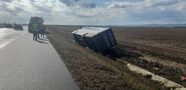 Автобус падна в канавката на магистрала „Тракия”. Според първоначалната информация ставаше дума за микробус. Инцидентът е станал на 222 км, предаде БГНЕС.