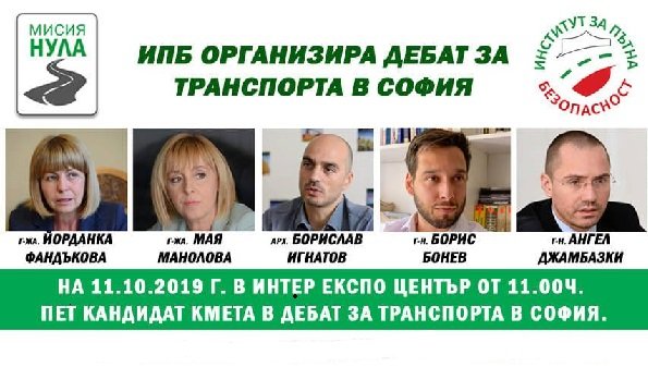 Дебатът е организиран от Института за пътна безопасност и ще се проведе в 11.00 часа в Интер Експо Център.