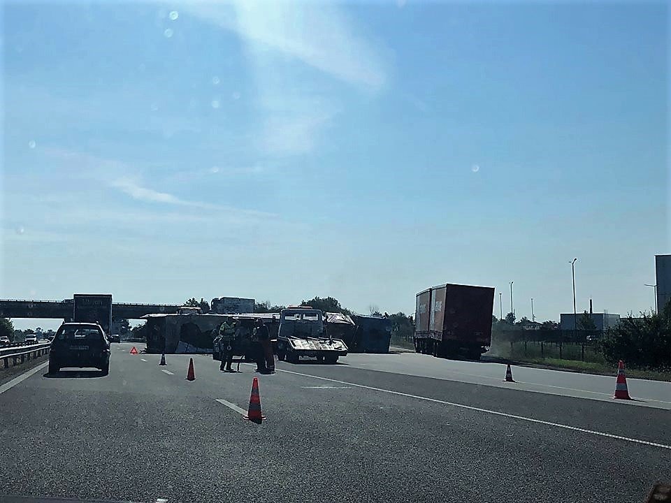 Катастрофа между два тежкотоварни камиона затруднява движението в района на 148-ми километър на АМ „Тракия" в посока Бургас. При инцидента няма пострадали хора, съобщиха от МВР.
