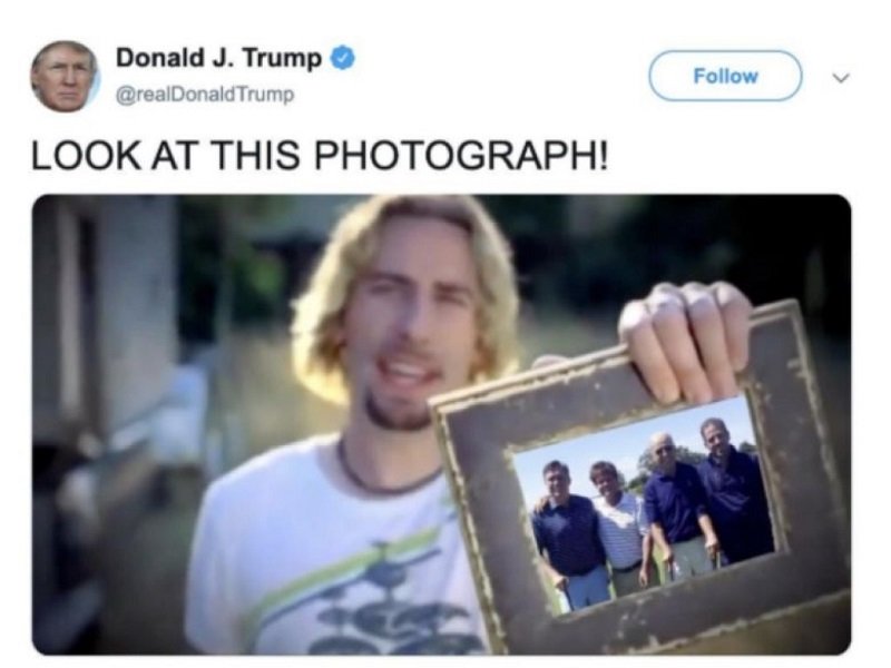 В началото на месеца Доналд Тръмп сподели колаж с момент от песента Photograph, в който вокалистът на групата Чад Крюгер показва снимка към зрителите, съобщи bTV. На мястото на оригиналната снимка е монтирана фотография на кандидата за президент Джо Байдън, неговия син и украинския бизнесмен Девън Арчър. Към колажа Тръмп е добавил и извадка от текста, която на български гласи “Вижте тази снимка” (Look at this photograph).