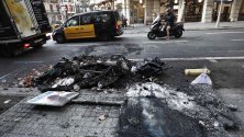 Тази сутрин миризма на изгоряло още се стелеше в центъра на Барселона близо до площад "Уркинаона", където продължава почистването на множеството парчета от изпочупени при снощните сблъсъци предмети, камъни, счупени стъкла и гилзи от гумени патрони.