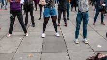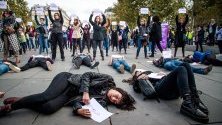 Протест в Париж срещу домашното насилие. Десетки жени лежаха като мъртви в центъра на града. Демонстрацията е опит да се насочи вниманието на обществото към проблема.