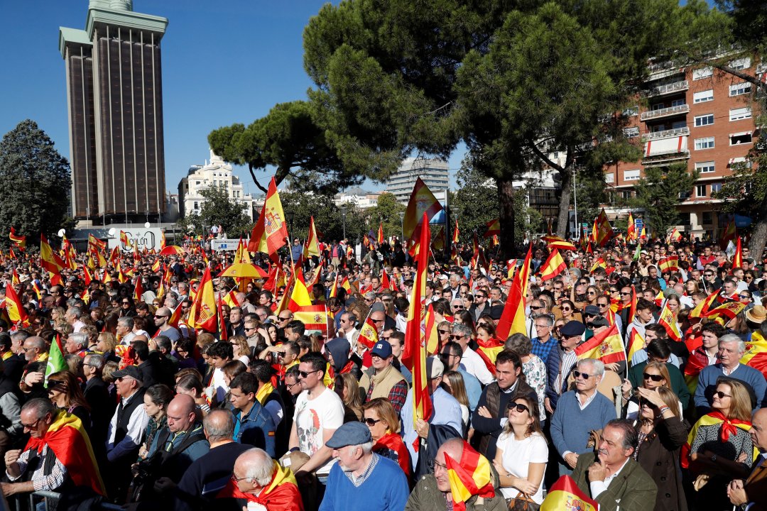 Събралите се на площада успяха да издигнат 50 метра дълъг и 20 метра широк испански флаг. На практика твърде малко известната партия „Вокс“ през април успя да се превърне в първата крайнодясна формация, която влиза в парламента откакто Испания се завърна към демокрацията след смъртта на диктатора Франциско Франко през 1975 година.