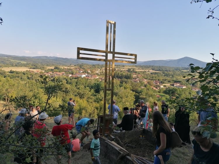 Искахме кръстът да се вижда от всички посоки и да привлича отдалечe хората. Избрахме мястото да е над манастира, където са били навремето лозята на Марян, до там има и стар път. Момчетата почистиха терена от храсти и дървета, помогнаха при монтирането на кръста, който е изработен в Сливен. Боядисаха го със специална златиста боя, да отразява слънчевите лъчи през деня, а през тъмните часове монументът е осветен. Похвала за усърдието заслужават Георги и Мариян, Иво и Светлан, Кирил, Данаил, Веселин, Стоян.“
