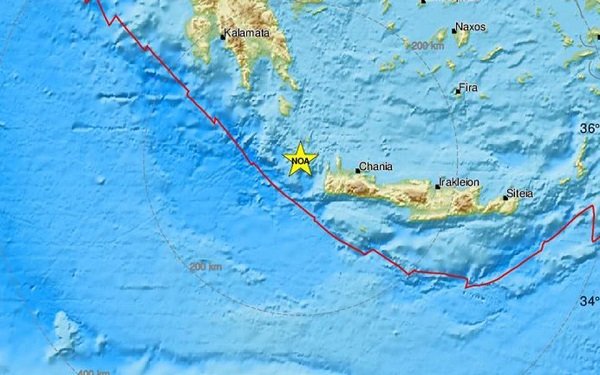 Земният трус е усетен в 9,23 ч. тази сутрин с епицентър на 84 км северозападно от град Ханиа, на 272 км южно от Атина, с дълбочина 56 км.