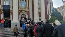 Стотици дойдоха пред Народния театър "Иван Вазов", за да се сбогуват с легендата на българкото кино и театър Стефан Данаилов, предаде репортер на ТОПНОВИНИ.