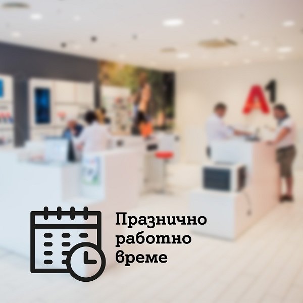 Единствените два празнични дни, в които няма да можете да посетите магазин на А1, са Коледа (25 декември) и Нова година (1 януари). За улеснение на клиентите на сайта на компанията има интерактивна карта, с помощта на която могат да открият най-близките магазини в съответния град и тяхното актуално работно време.