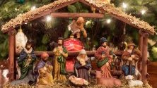 Композиция, пресъздаваща библейската сцена от раждането на Исус, на бетонна стена, пронизана от снаряд - това е най-новата творба на "уличния" художник Банкси.