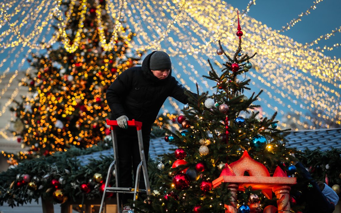 Московчани тази година отбелязват Коледа без сняг заради необичайно топлото време в руската столица през последните дни.