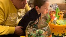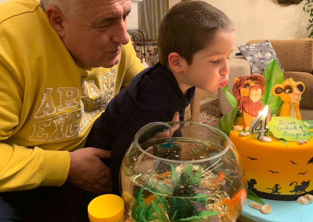 Гордият дядо подари на малкия Бойко аквариум с рибки и му пожела да расте здрав.