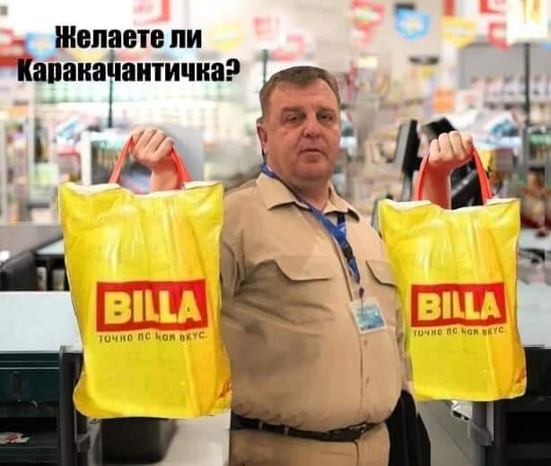 Показателна за силата на хумористичната професия беше и вълната с колажи и остроумия по адрес на министъра на отбраната Красимир Каракачанов в социалните мрежи, при която той беше изобразяван с торбичка „Билла“.