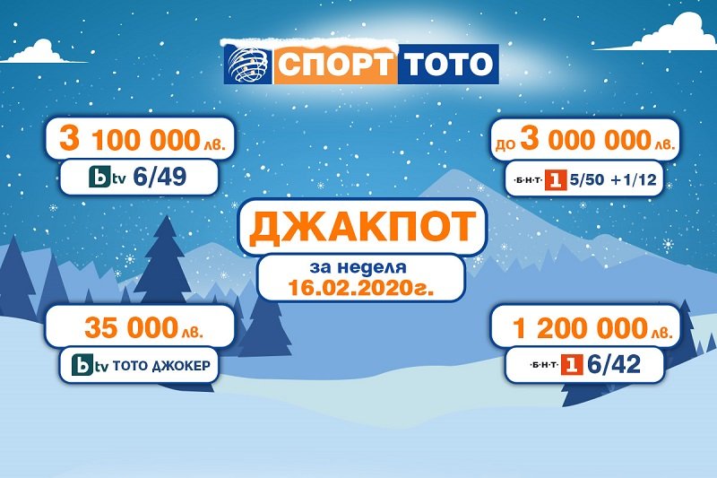 Има и още много съвети, които можем да ви предложим, за да ви помогнем по пътя на забогатяването, но може би най-лесният начин е да се включите в игрите на Български спортен тотализатор, където шансовете за печалба са големи. СПОРТ ТОТО ви дава множество възможности да осъществите мечтите си, като спечелите един от многомилионните джакпоти. В следващия тираж на игрите, на 16 февруари, ви очакват печалби на обща стойност 7 550 000 лв. Натрупаната сума в една от най-любимите на много българи числова игра „ТОТО 2 – 6/49“ е на стойност 3 100 000 лв., от играта „ТОТО 2 – 6/42“ може да забогатеете с 1 200 000 лв. , а ако познаете 5 от общо 50 числа и една от 12-те зодии в играта „ТОТО 2 – Зодиак“, може да спечелите до 3 000 000 лв. Не изпускайте своя шанс и се присъединете към клуба на милионерите.