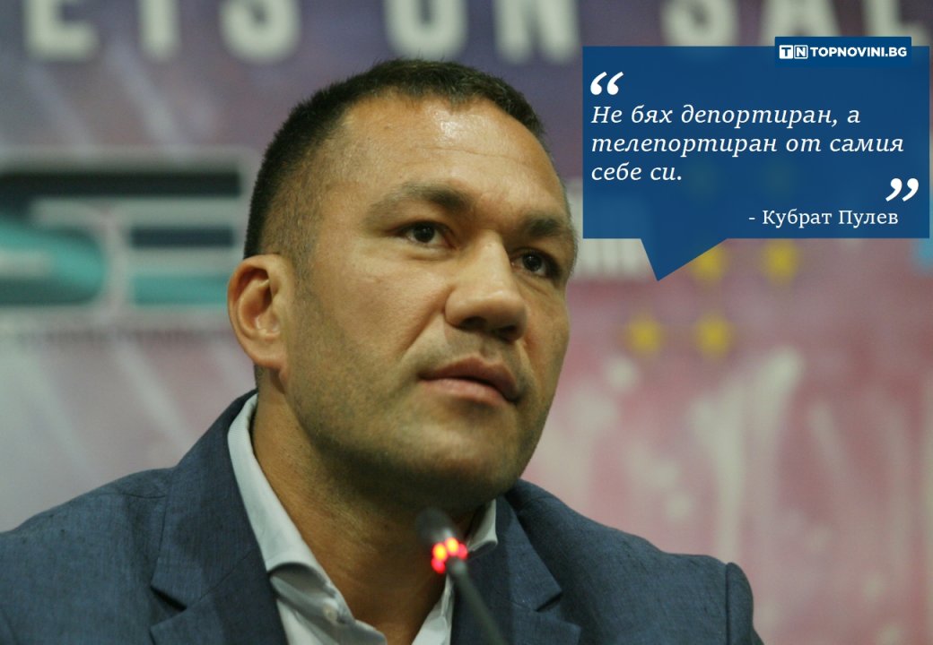 На летището в Чикаго полицаите, служителите, всички бяха супер учтиви. Снимахме се, даже се смяхме. Бях им доста интересен като личност и се бяха събрали всички... Не бях депортиран, а телепортиран от самия себе си. Не виждам някакви притеснения или проблеми. Имаше някакъв проблем с визата, който и те самите не успяха да уточнят. За мен всичко е окей, така е трябвало да се случи. И Ванга е казала "Следвайте знаците". Това е знак, че трябва да се подготвям в Европа по-концентрирано, а не в Щатите", така боксьорът Кубрат Пулев обясни казуса около проблемите с пребиваването си в САЩ.