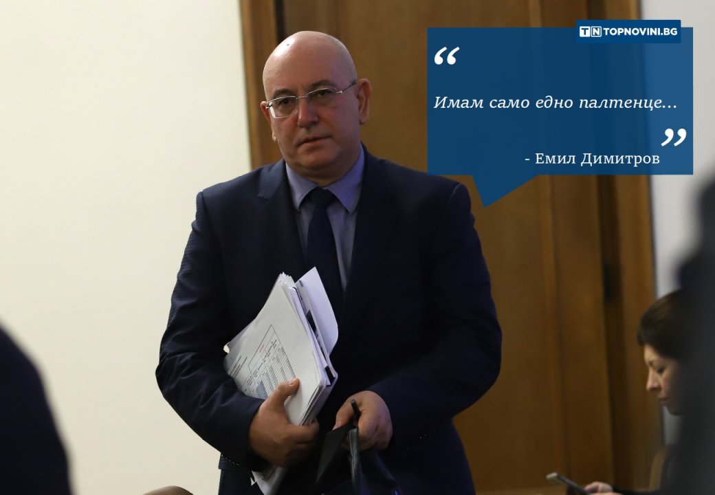 В момента имам само едно палтенце и едни капки за очи ми стоят на бюрото. Ако нещо има, съм казал портиерът да ми ги донесе долу, да си отида, няма и да ви притеснявам...Вчера си събрах нещата, ако решат да сдавам поста, няма да създавам проблеми, ще го сдам, ако решат, че трябва да продължа да работя, ще продължа да работя". Така министърът на околната среда и водите Емил Димитров коментира, че е готов да напусне поста, ако премиерът реши.