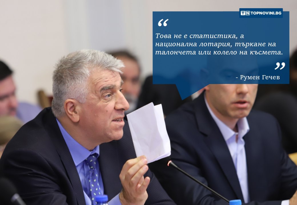 С неполитическа, приятелска силна прегръдка на правителството, нашият НСИ въвежда нова световна мода в статистиката - никакви предварителни прогнозни данни и оценки, само на сигурно - 10 години след обработката на данните. Някой се опитва да ми обясни, че като при виното, колкото по отлежават данните, толкова по-надеждни стават. Това не е статистика, а национална лотария, търкане на талончета или колело на късмета." Депутатът от БСП Румен Гечев обвини премиера Бойко Борисов и финансовия министър Владислав Горанов, че правителството е подавало неверни данни на НСИ.