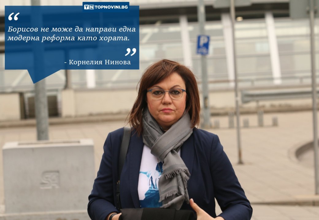 "Г-н премиер, не можете да направите нито една модерна реформа като хората. Здравната се провали, административната доведе до хаос с касови апарати и наредба №18.  Факт е, че нито една реформа не сте направили като хората. Ефектът от тях е обратен. Всичките ви реформи са допълнително натоварване с плащане от хората, без срещу това да има подобряване на услугата, за която плащат. Печалбите от тези допълнително събрани пари отиват в частни джобове".Така лидерът на БСП Корнелия Нинова се обърна към премиера Бойко Борисов по време на изслушването му в парламента за старта на тол системата.