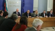 Премиерът Бойко Борисов, министърът на финансите Владислав Горанов и заместник-министърът на регионалното развитие и благоустройството Николай Нанков проведоха среща с представители на превозвачите в сградата на Министерския съвет.