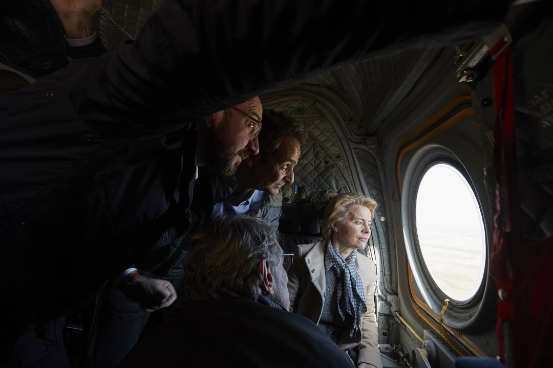 Урсула фон дер Лайен, Шарл Мишел и председателят на Европейския парламент Давид Сасоли пристигнаха по-рано днес в Гърция, а премиерът Кириакос Мицотакис ги заведе на границата с Турция, където от няколко дни хиляди мигранти се опитват да преминат на гръцка територия по пътя си към Европа.
