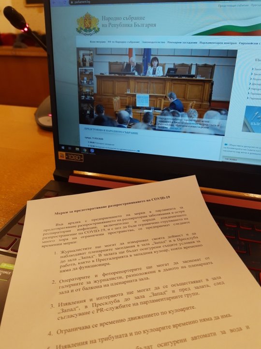Странна сутрин за парламентарните репортери. Очаквахме промени в работата на Народното събрание заради коронавируса, но май не съвсем такива. На входа за журналисти няма никаква дезинфекция. Получихме само лист с ограниченията, които ни засягат. В Министерски съвет например мерките за журналисти бяха различни- маски и измерване на температурата. Е, нас не ни провериха.