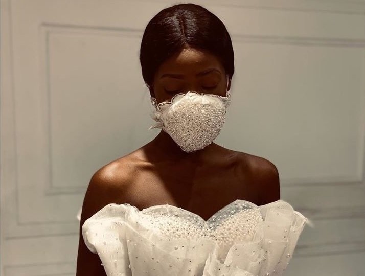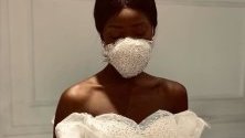 Египетски дизайнер, напимер, измайстори сватбена рокля с модерна предпазна маска за лице, която да предпазва булката.