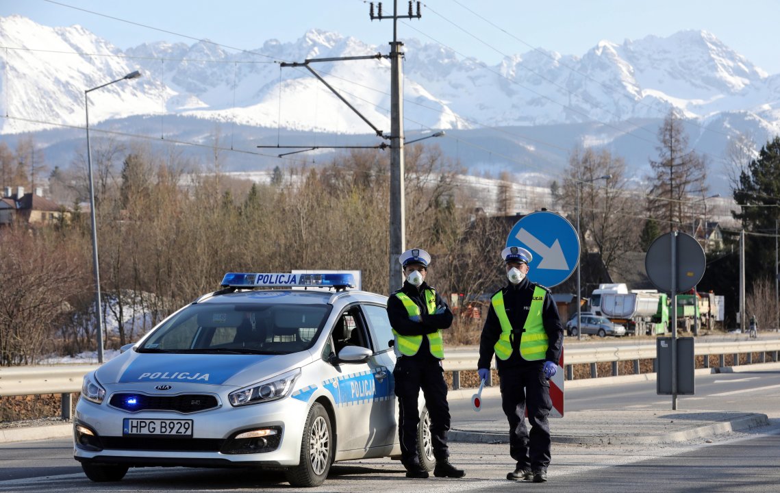 Снимка: БГНЕС/ Патрул на КАТ контролира автомобилите преди да влезнат в Закопане, Южна Полша