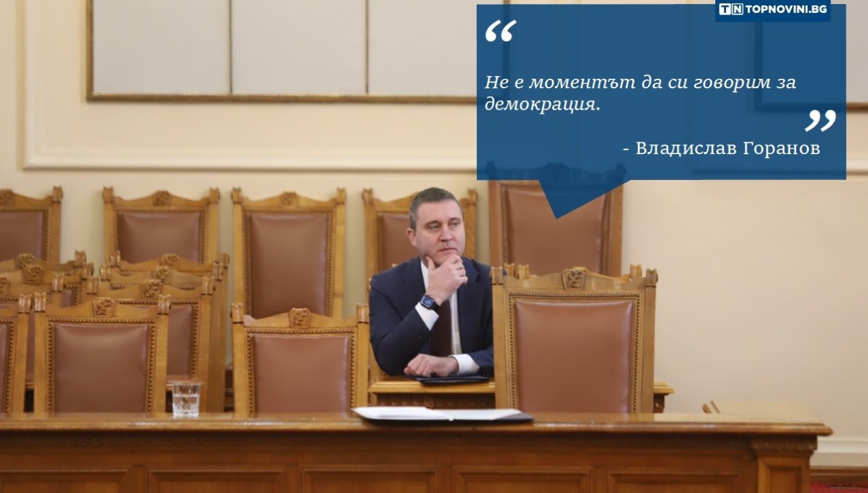 Кризата с коронавируса и икономическите последици от нея насочиха прожектора на общественото внимание към финансовия министър Владислав Горанов и той също успя да се открои с няколко значими изказвания. Сред тях са думите: "Не е моментът да си говорим за демокрация", с които коментира въведените извънредни мерки в страната.