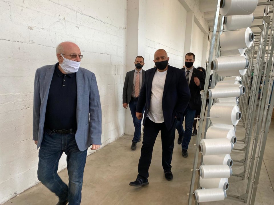 Премиерът Бойко Борисов посети текстилния завод "Аглика Трейд" в Твърдица, което заради епидемията реорганизира дейността си и в момента произвежда защитни облекла за многократна употреба.