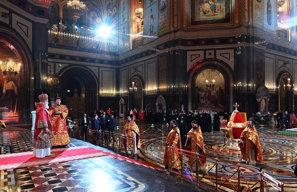 По традиция патриарх Кирил оглави празничното пасхално богослужение в храма „Христос Спасител“ в центъра на Москва и точно в полунощ възвести Христовото Възкресение. Богослужението беше предавано пряко в ефира на няколко федерални телевизионни канала и на сайта на Руската православна църква. В храма беше доставена капсула с благодатния огън от Ерусалим, но традиционната церемония по посрещането на летището с участието на хиляди вярващи беше отменена.