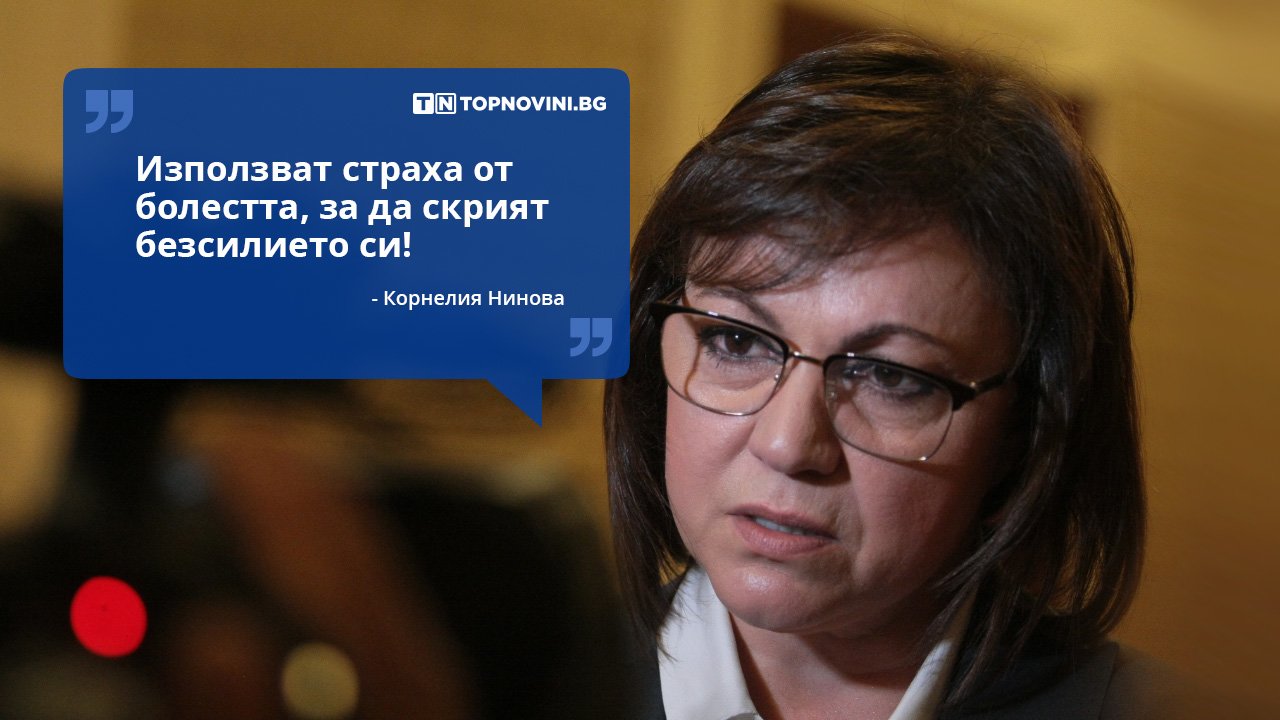 "Уважаеми българи, днес министър-председателят се скри от вашите въпроси и се подигра с вашите тревоги...Днес Борисов лично даде пример, че за него думи като институции и държавност не съществуват и направи поредна стъпка за еднолична власт, вървяща смело към диктатура...Хаосът се създава с постоянната смяна на позициите - правителството и лично Борисов създават стрес. Говори се за катафалки, претрупани морги. Използват страха от болестта, за да скрият безсилието си срещу безработицата, фалитите и неясното бъдеще, настройват хората едни срещу друг - София срещу провинцията, такива под карантина и такива без, българи срещу роми, едни експерти срещу други... Държавата абдикира от отговорността си. Правителството работи на принципа проба-грешка, а ние искаме от тях ясен план оттук нататък за излизане от кризата“. Така лидерът на БСП Корнелия Нинова коментира решението на ГЕРБ да не се регистрира за извънредното заседание на Народното събрание и така да осуети изслушването на премиера Бойко Борисов.